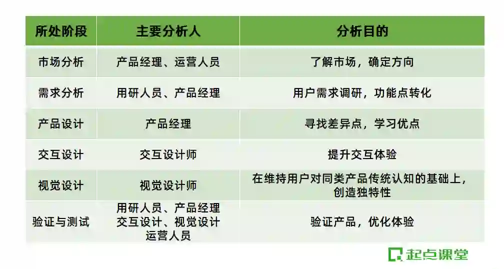 在产品不同的发展阶段,产品经理都需要对其进行竞品分析,而在不同的发展阶段,分析报告则会有完全不同的目的和侧重。