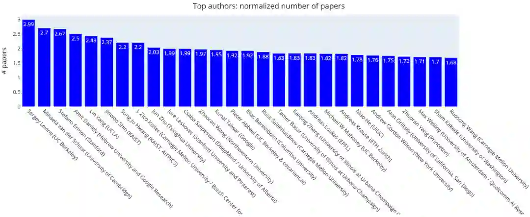 NeurIPS 2020则有28位作者发表了7篇以上的论文。