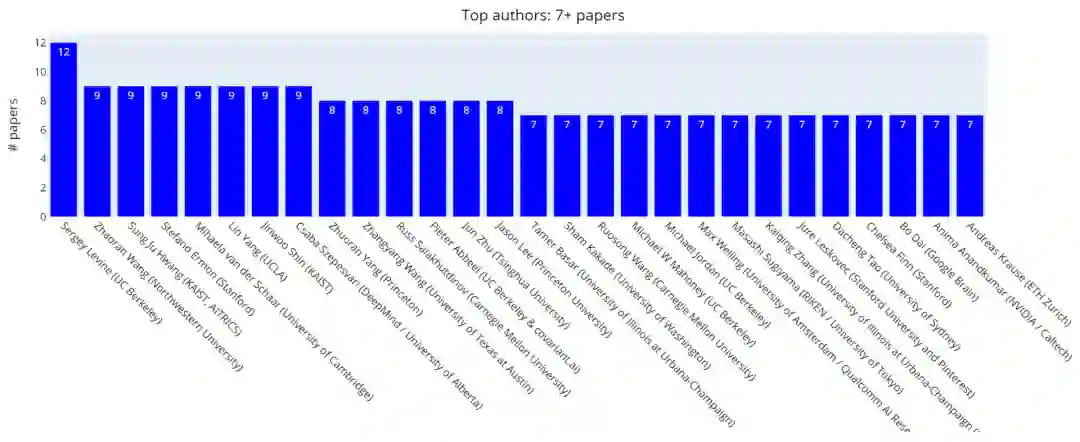 ICML 2020中有9位作者发表了7篇以上的论文,