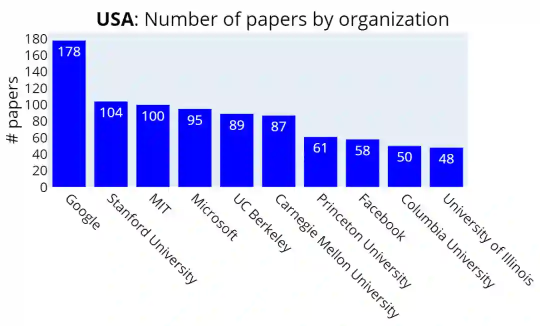 美国:谷歌、斯坦福大学、MIT、微软、UC伯克利、CMU、普林斯顿大学、Facebook、哥伦比亚大学、伊利诺伊大学