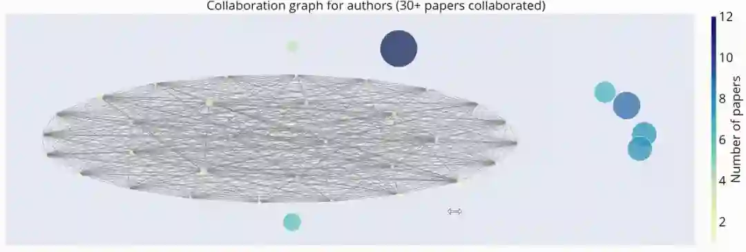 它还显示了过去几年的论文发表率如何变化以及作者和组织如何合作。