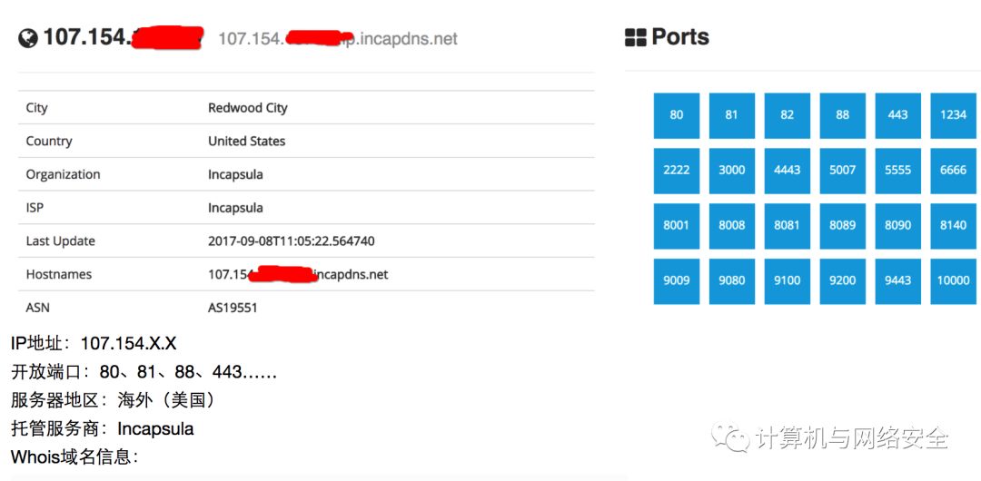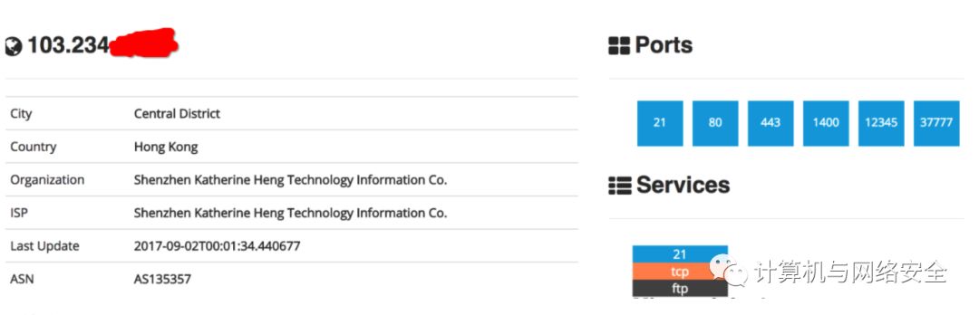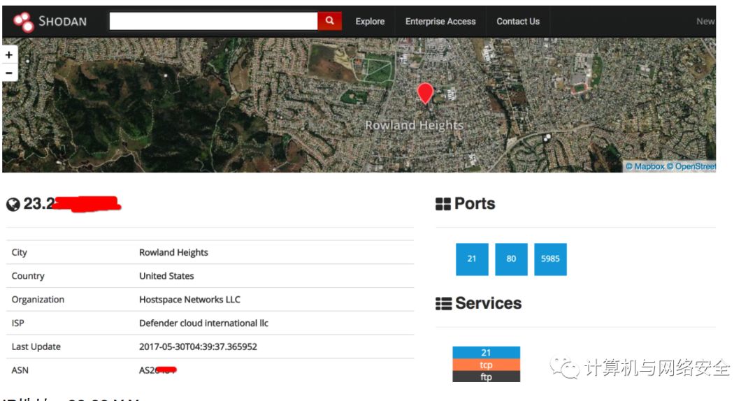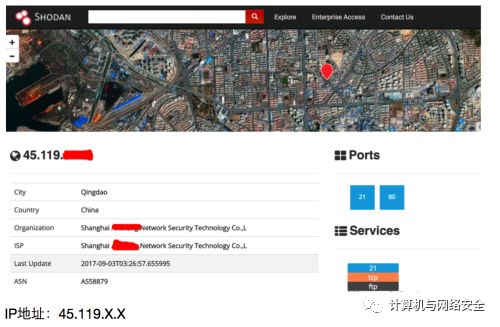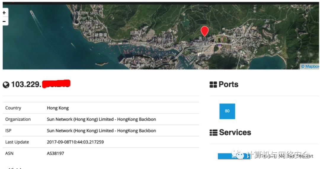 ③接下来,我们还需要进一步的做信息收集,例如这些网站的服务器架设在哪个地区?到底在国内还是在国外运营的? 联系信息是什么?看看是否有关联性,是分散运营还是某个大团队在运营? 我们对这些色情网站服务器进行信息探测,这里借助shodan(撒旦,传说中的"黑暗搜索引擎")来进行分析: