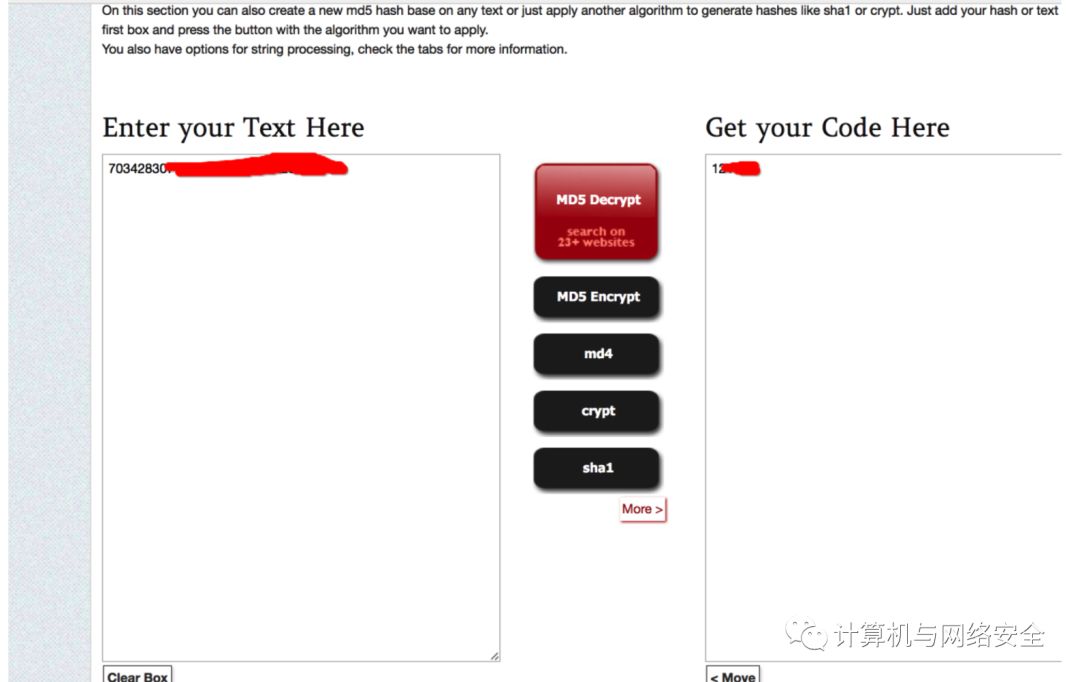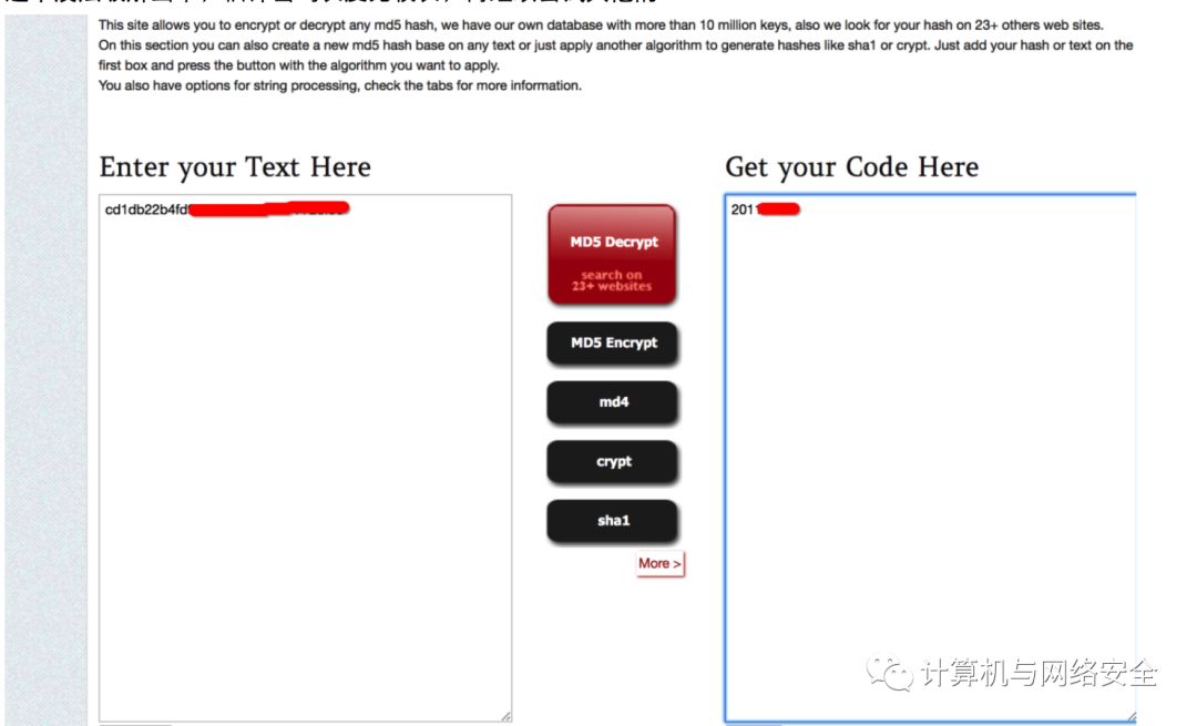 8位数字密码的,同样秒破。另外,不同在线MD5网站的哈希存储量和计算速度不同,有些后台还包括了泄露了的社工库信息,所以可以多个网站尝试。