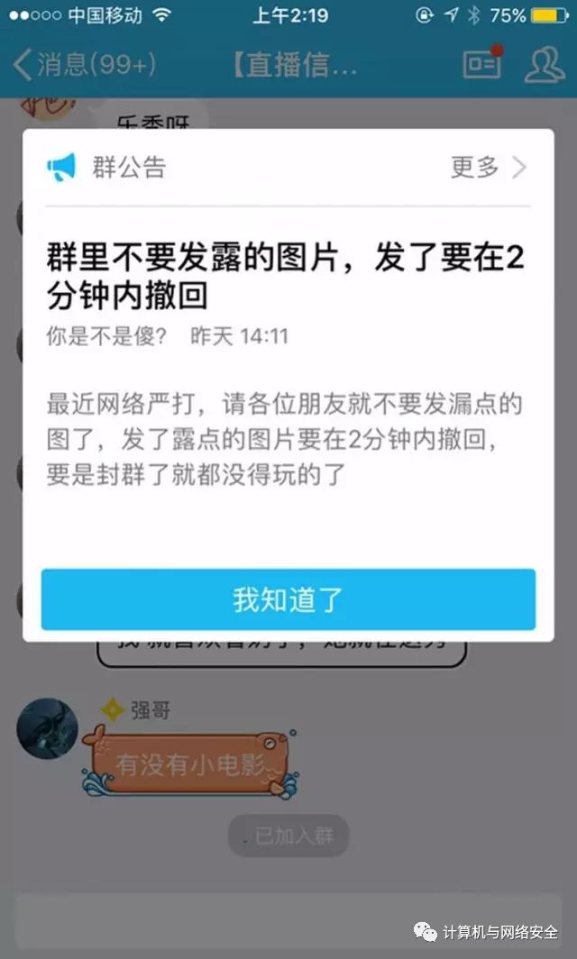 一个名叫“玩X直播界”的QQ群在色情直播观众中小有名气,该群宣称:“花这么多钱给主播刷礼物,还冒着被主播欺骗的危险,为何不选择这里,老司机知道,一个平台绿了(指停播),马上就会有新平台不断崛起。新老司机活跃起来,有福同享,有车同坐。”记者尝试加入该群接连数次被退回申请。