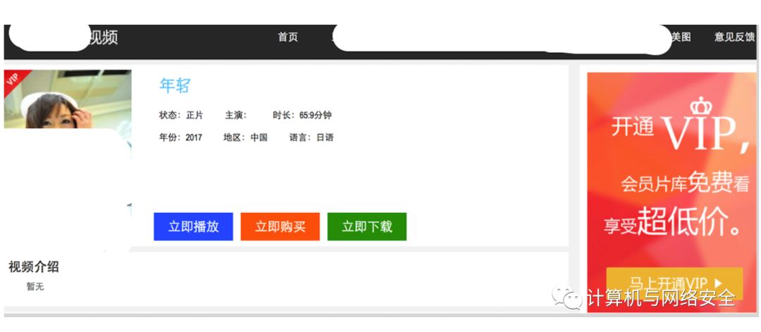 大概分析了网址结构和内容布局,基本遵循一个规矩:图片免费观看,视频只能试看,观看全部需要付费购买。例如,这里点击任意一个视频,然后到了这样的页面介绍=>