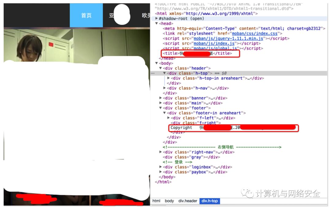 直觉告诉我,这些网站应该用的是同一类CMS(内容管理系统),更直接一点,就是"se'情CMS",而且背后可能是某些做'se'情'灰产的团队在运营。既然都是套的CMS做的网站,那么就有同样的banner、网站标识、开发者信息之类,即"网站指纹"。