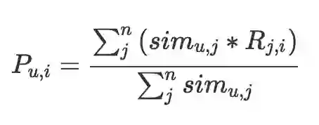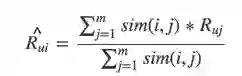 公式左边的表示用户u对物品i的预测,公式右边是一个关于用户u和用户j的一个相似度加权,
