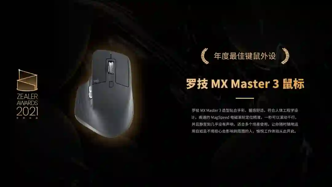 罗技 MX Master 3 造型贴合手形,握感舒适,符合人体工程学设计,疾速的 MagSpeed 电磁滚轮定位精准,一秒可以滚动千行,并且静音到几乎没有声响,适合多个场景使用,让你随时随地运用自如且不用担心会影响到周围的人,愉悦工作体验从此开启。