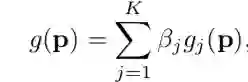 将这些高斯分布结合起来,则可以用一个高斯混合分布(MoG) 表达: