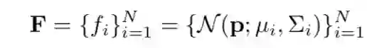 接下来,作者将问题定义为找到一组由 k 个高斯分布组成的混合高斯分布来逼近上文中得出的 N 个高斯分布组成的混合高斯分布,其中 k 应该远小于 N。即,给出高斯混合分布: