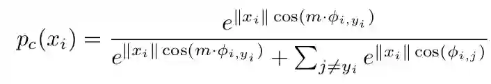 其中 m 是超参数,来控类别之间的 angular margin。当 m = 1 时,上式完全等价于 Angular softmax loss 的后验分布。