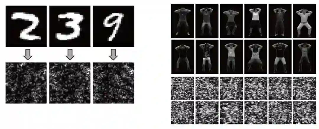 此外,从上图右可以看出,不仅仅不同的数字、姿势等模式可以形成不同的散斑图案,不同的人体折射的激光也会形成不同的散斑图案,因为不同人的身材等特征不同。这会给识别任务造成一定的困难。