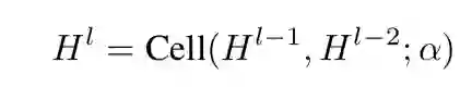 换句话说,α_{j→i}^k 是与每个运算符 O^k 相关联的归一化标量,容易实现为 softmax,从而容易对备选的层类型做出选择。在一个单元内,所有张量都具有相同的 shape,这使得方程中的(加权)总和成为可能。