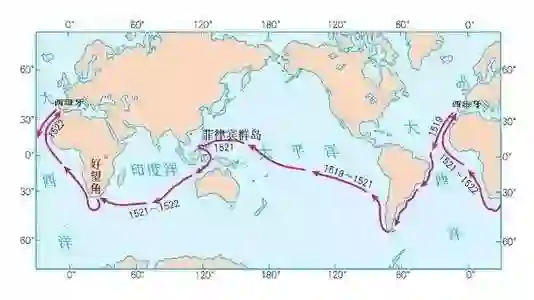 ►麦哲伦环球航行路线图 图片来源:百度图片