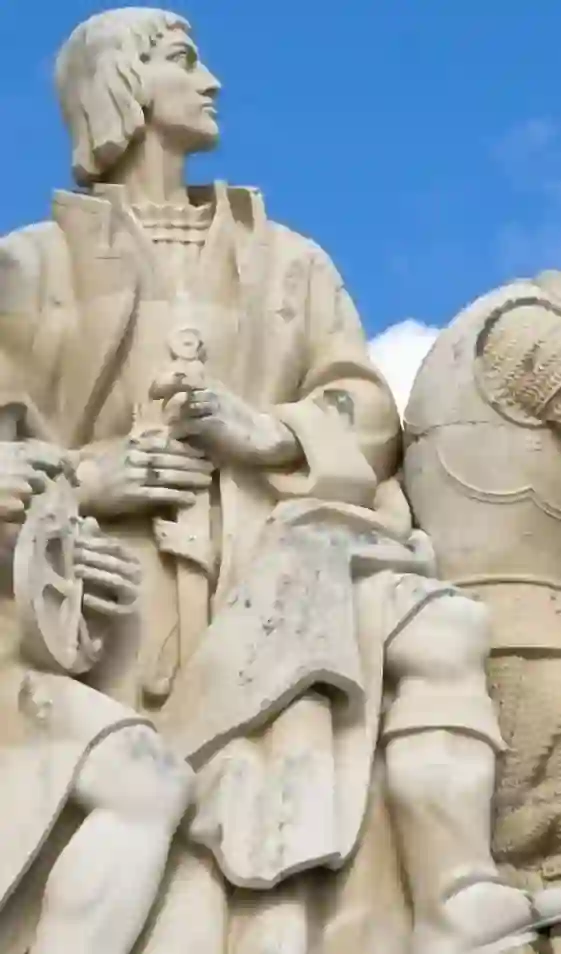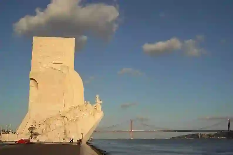 ►位于葡萄牙首都里斯本贝伦区巴西利亚大马路(Avenida da Brasília)的发现者纪念碑,座落于圣哲罗姆修道院正前方,邻近4月25日大桥,这个位置是葡萄牙人在航海时代出海的地方。图片来源:维基共享资源,摄影/Nol Aders
