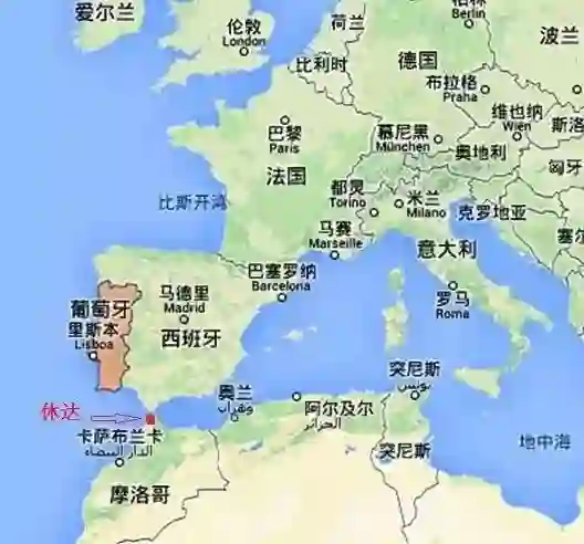 ►西南欧与葡萄牙地图 图片来源:百度地图(红色标示为本文作者所加)