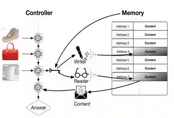 关于 NTM 模型细节方面,它包括几个关键部分:Controller,读写头 ( 一般集成在 Controller 里 ) 以及 Memory。