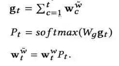 为了平衡各 slot 的使用率,我们对 write weight 进行了 re-weight 的操作,即累积之前的 write weight 得到 gt 向量,经过转换后得到转移概率矩阵 Pt 再乘以 write weight 向量得到改写后的写入权重。改写权重的计算方式如下: