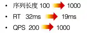 关于线上效果,如下表所示,在 GAUC 的评价指标下,我们的模型相较于 DIEN 能提高1个百分点的效果。表2中倒数第二行是在参数不同步的情况下的模型效果,可以看出 UIC server 和 RTP server 模型参数存在1天的差异时模型效果未下降;最后一行是当训练数据中有大促数据时 ( 由于大促用户行为丰富,同样长度的行为序列涵盖的时间跨度较短 ),模型效果略有下降,大概下降了两个千分点。