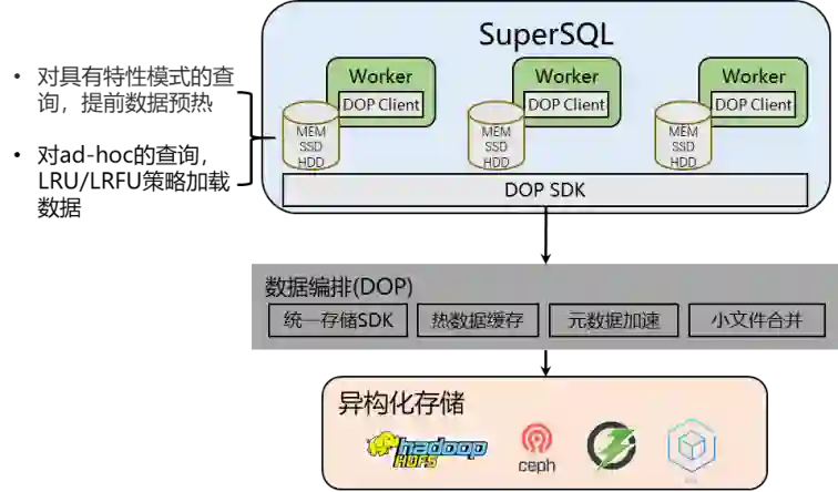 数据编排自适应:实现不同异构存储场景下的存储加载策略,自适应不同架构下的数据融合计算需求,通过自动数据冷热分层,多级缓存,提升存储访问性能