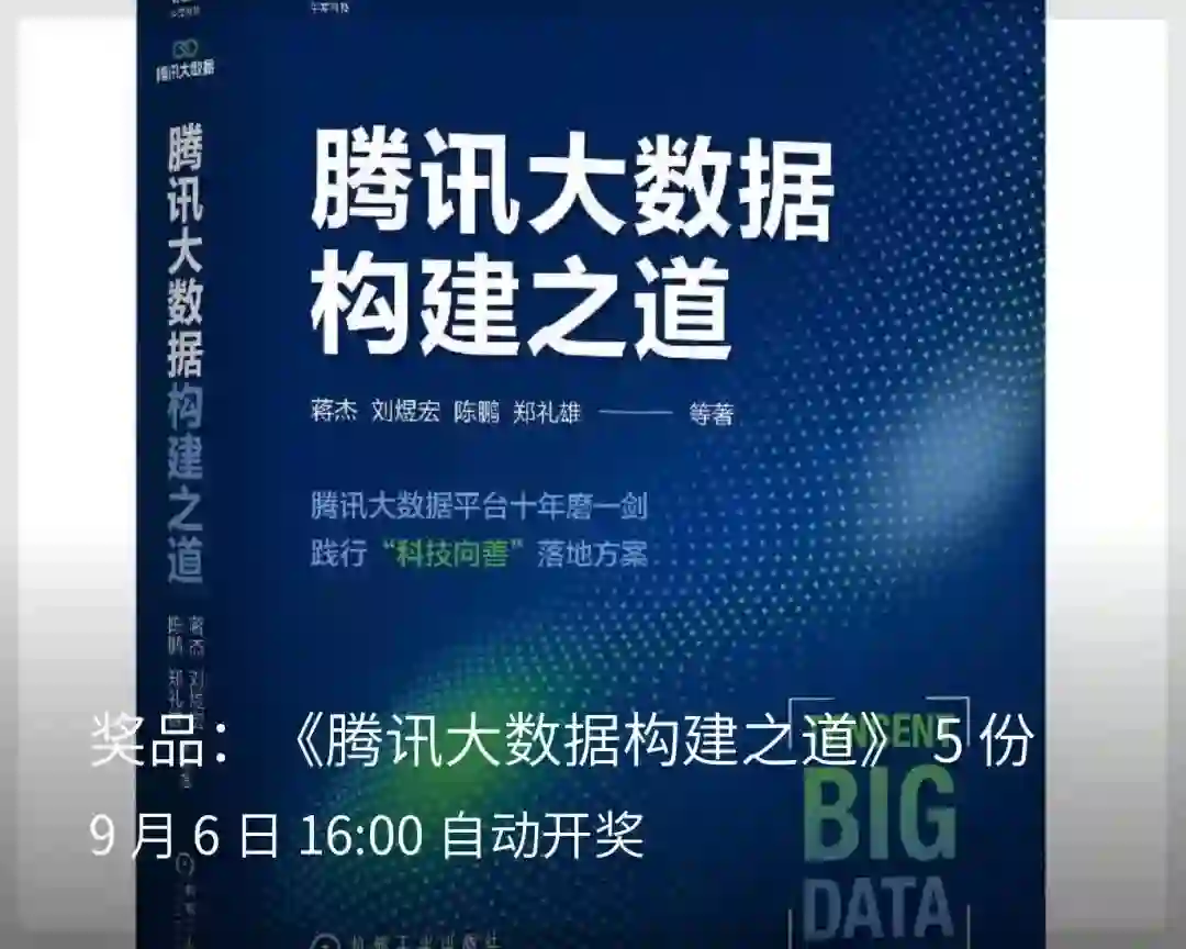 点击下方小程序参与活动,共抽取 5 名 InfoQ 的读者朋友分别送出《腾讯大数据构建之道》一本。也可以点击阅读原文购买书籍。