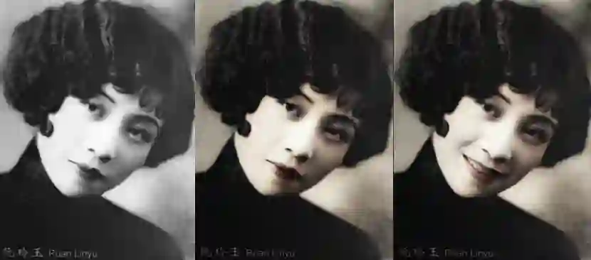 比如前面这张阮玲玉露齿而笑的照片,原片其实长这样: