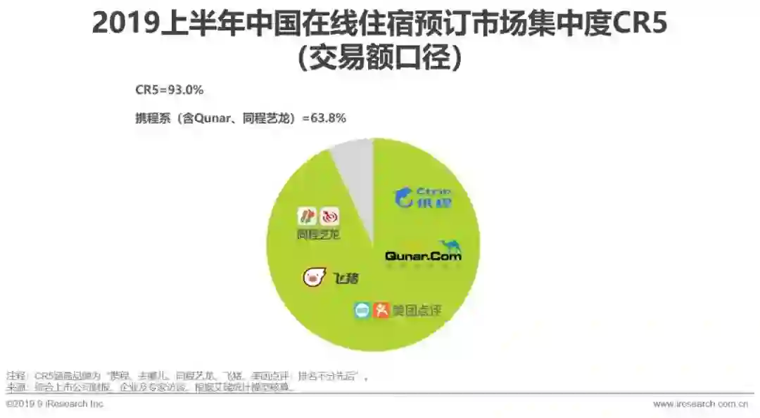 •交易额口径下,中国在线住宿预订市场CR5为93.0%