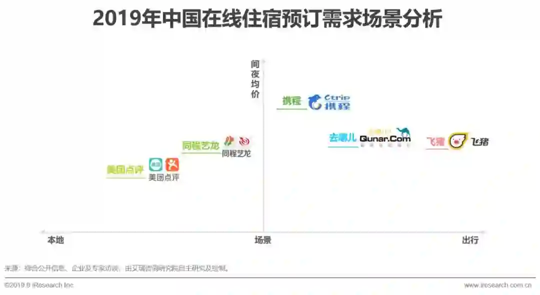 目前,中国在线住宿预订需求场景主要分为两类,一类为本地化场景,如突发性住宿需求等;一类为出行类场景,如度假、商旅等住宿需求。另外从间夜均价角度来看,市场各企业也存在一定差别。