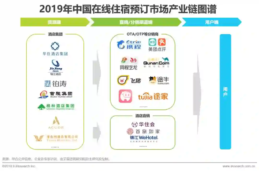 产业链条清晰,在线触达用户渠道集中在OTA/OTP/酒店直销