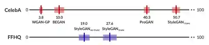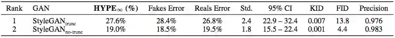 表3:FFHQ-1024培训的StyleGANtrunc和StyleGANno-trunc上的HYPE∞。评价者经常被StyleGANtrunc欺骗。