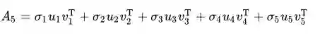 我们都知道,图片实际上对应着一个矩阵,矩阵的大小就是像素大小,比如这张图对应的矩阵阶数就是450*333,矩阵上每个元素的数值对应着像素值。我们记这个像素矩阵为A 现在我们对矩阵A进行奇异值分解。直观上,奇异值分解将矩阵分解成若干个秩一矩阵之和,用公式表示就是: