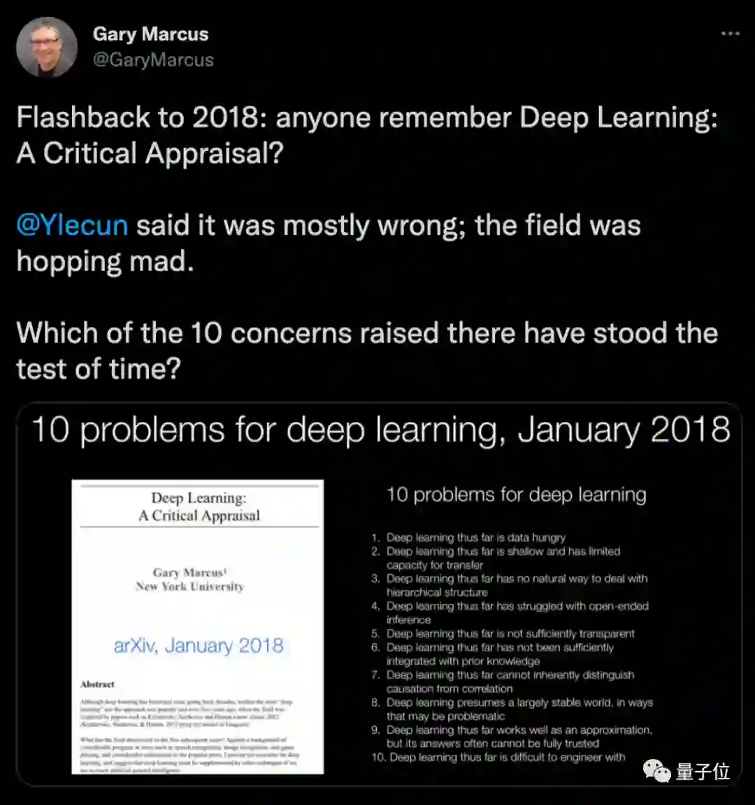 并且就在几个小时前,他还挂出Lecun在2018年发表的观点。