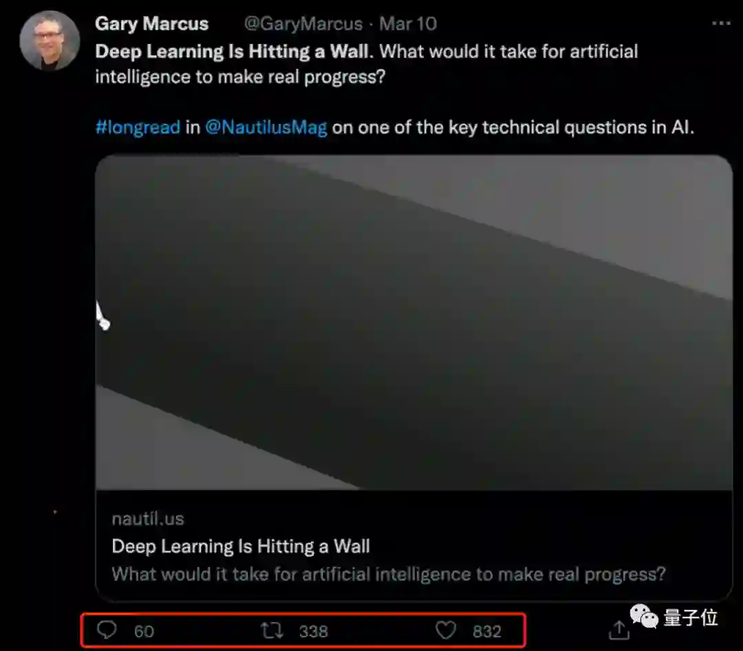 他所说的这篇文章不是别的,正是最近在圈内引起了一波讨论热潮的《深度学习要碰壁了》。