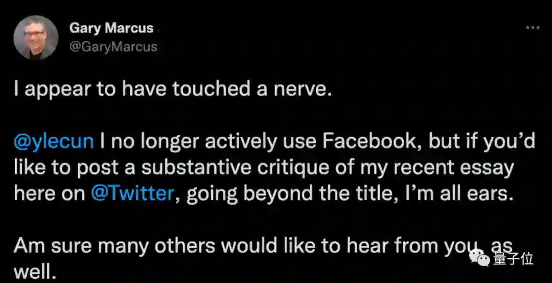 导致Gary Marcus本人直接在推特上“下战书”:欢迎你发表观点,我洗耳恭听。