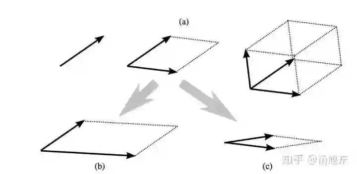 。这是因为矩阵可以看着是一组向量的集合,而矩阵的行列式的物理意义为矩阵中的各个向量张成的平行多面体体积的平方。这些向量彼此之间越不相似,向量间的夹角就会越大,张成的平行多面体的体积也就越大,矩阵的行列式也就越大,对应的商品集合的多样性也就越高。当这些向量彼此正交的时候,多样性达到最高。可以通过一个二维平面上的例子直观地理解一下这背后的逻辑。