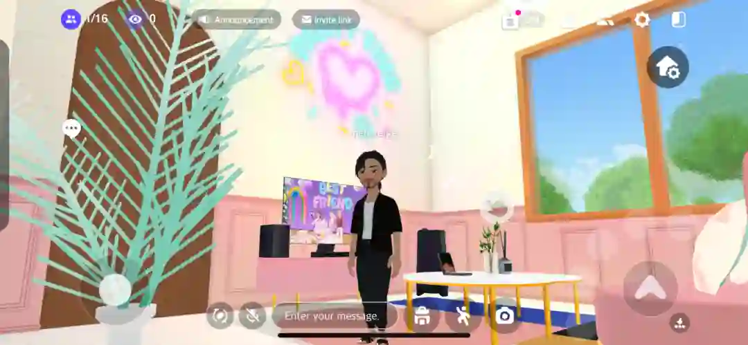 玩家可以从房子的前院开始探索,与其他人互动,进入不同的房间参观。