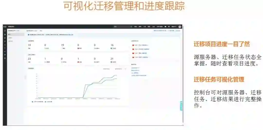 在真实的迁移上云场景中,特别是大规模的迁移项目,整体的迁移周期可能跨度达数周,甚至数月,待迁移的服务器数百台甚至上千台。能够对迁移任务进行批量化管理,对迁移进度进行监控保证项目的进度就显得格外重要。