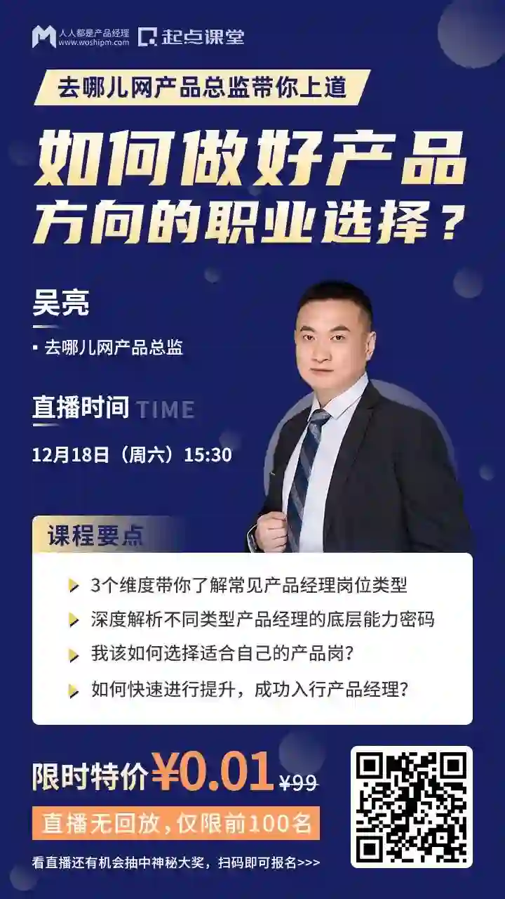 本次特别邀请了去哪儿网产品总监@吴亮老师直播授课。