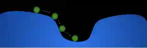 训练过程(梯度下降)可以看成是滚下山坡的球:这里的地形是损失函数(也称为成本/误差函数),球的位置代表所有参数的当前值(权重和偏差)。