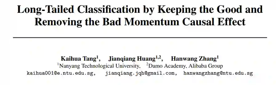 论文题目: 《Long-Tailed Classification by Keeping the Good and Removing the Bad Momentum Causal Effect》。