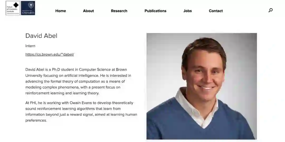 这位学霸小哥哥名叫David Abel,在美国布朗大学计算机科学专业就读,其实还算不上博士生,在他的个人主页上,还标注着“Phd Candidate”,师从Michael Littman,研究重点是抽象概念及其在智能中的应用。