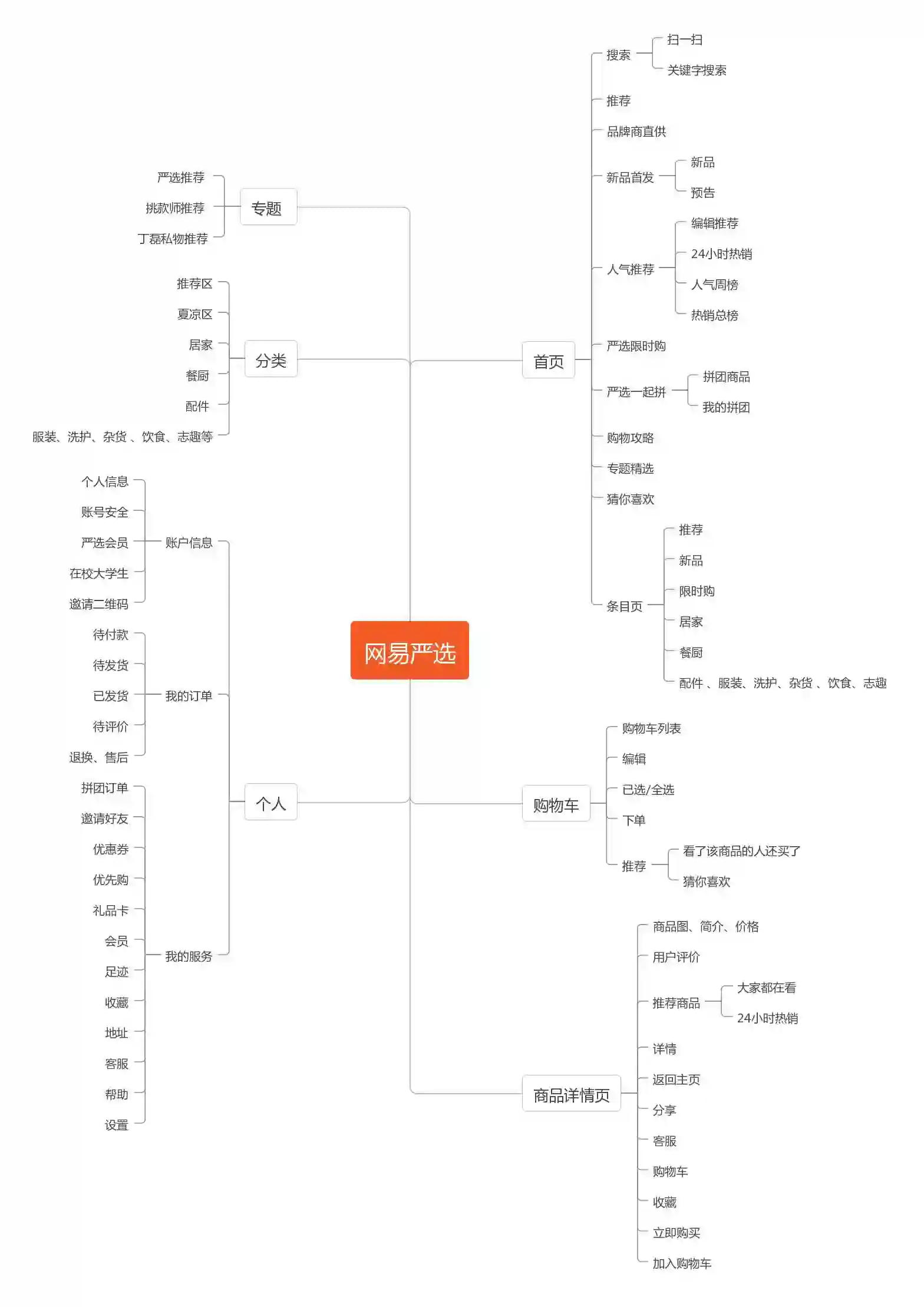 网易严选:首页、专题、分类、购物车、个人