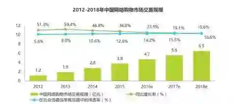 随着电子商务的发展,网络购物市场的规模呈现逐步上升的状态,根据艾瑞网的数据,中国网络购物市场交易规模,2017年预计同比增长19.1%,在社会消费品零售总额中的渗透率约占15.5%。