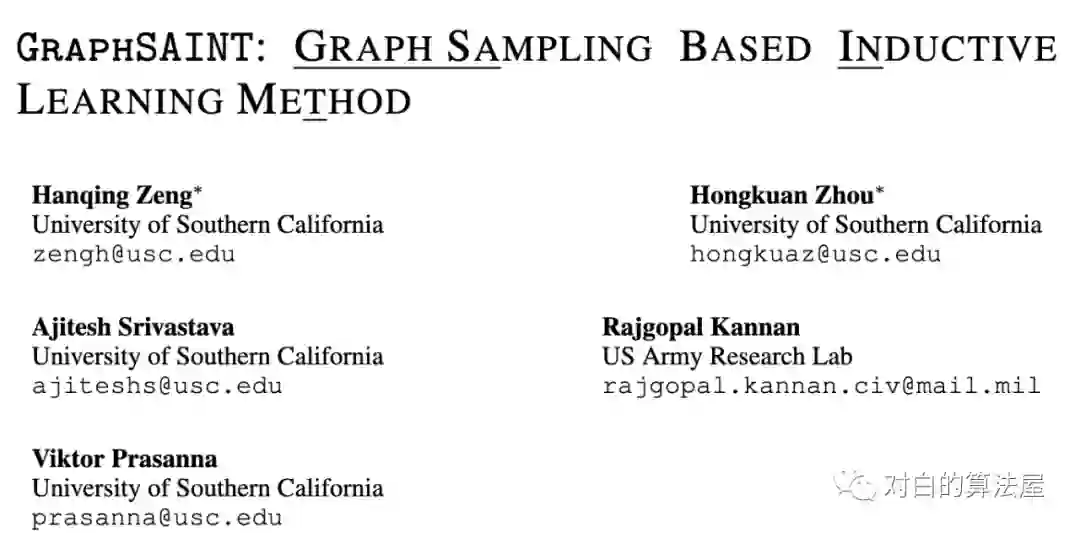 论文标题:GraphSAINT: Graph Sampling Based Inductive Learning Method