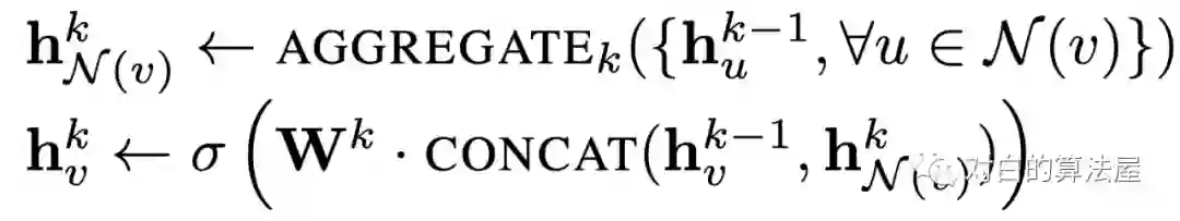 2、根据聚合函数聚合邻居顶点蕴含的信息;