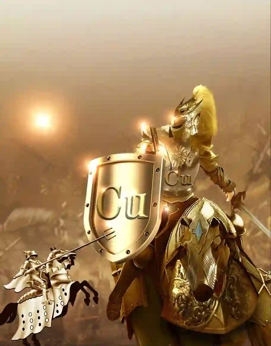 这种类贵金属的铜催化剂在催化反应中被“冻结”在金属态,类似于战场上穿上黄金盔甲的武士,能有力的抵御敌方的进攻。(图片系作者自制)