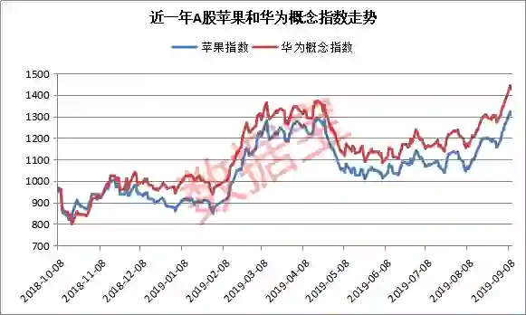 而今年以来与5G产业链相关的模块个股均有不俗的表现。5G指数年内涨幅已突破50%,华为概念指数年内涨幅达48.31%,近一年来的累计涨幅跑赢苹果指数12个百分点。
