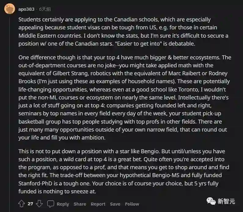 有的网友干脆给出了心目中的ML排名:多伦多、蒙特利尔 > 麻省理工学院、斯坦福大学、CMU、UCB。