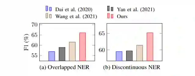 命名实体识别(Named Entity Recognition,NER)是自然语言处理领域的一项非常基本的任务,在社区长久以来一直得到广泛的研究。当前的 NER 的研究重点已经从常规的扁平命名实体识别(Flat NER)逐渐转向了重叠命名实体识别(Nested/Overlapped NER)与非连续命名实体识别(Discontinuous NER)。