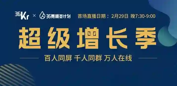 36氪暖冬计划“超级增长季”首场B端增长大会将于2月29日19:30-21:00正式举行,我们邀请到了阿里云云市场总经理朱以军、火眼云CEO张陆鹏、纷享销客创始人&CEO罗旭、达晨财智企业服务行业合伙人&董事总经杨廷辉、以太一堂创始人&以太创服VP许楚以及36氪助理总裁马金男为我们带来分享,同时我们也根据报名表单收集的信息,筛选出了近100家企业代表与各位嘉宾进行同屏互动,首次打造“百人同屏、千人同群、万人在线”的大型线上直播互动大会。